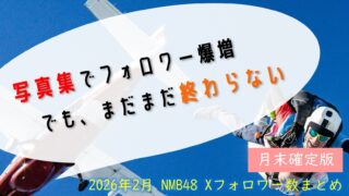 写真集発売でフォロワーを大きく増やした芳賀礼。しかし、そのあとには「れいもがんばるぞー!」のひと言が。夢を追い続けること、それが彼女の本当の魅力なのでしょうか?他にも、フォロワー数を大きく伸ばした二人の11期生や、投稿数トップの吉見純音など、2026年2月のXフォロワー数まとめです♪