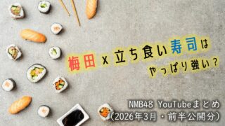 NMB48 YouTube再生回数 結果レポ NMB48 YouTube 再生回数とプチ分析まとめ (2026年3月 後半) | 寿司動画と卒業動画の反響